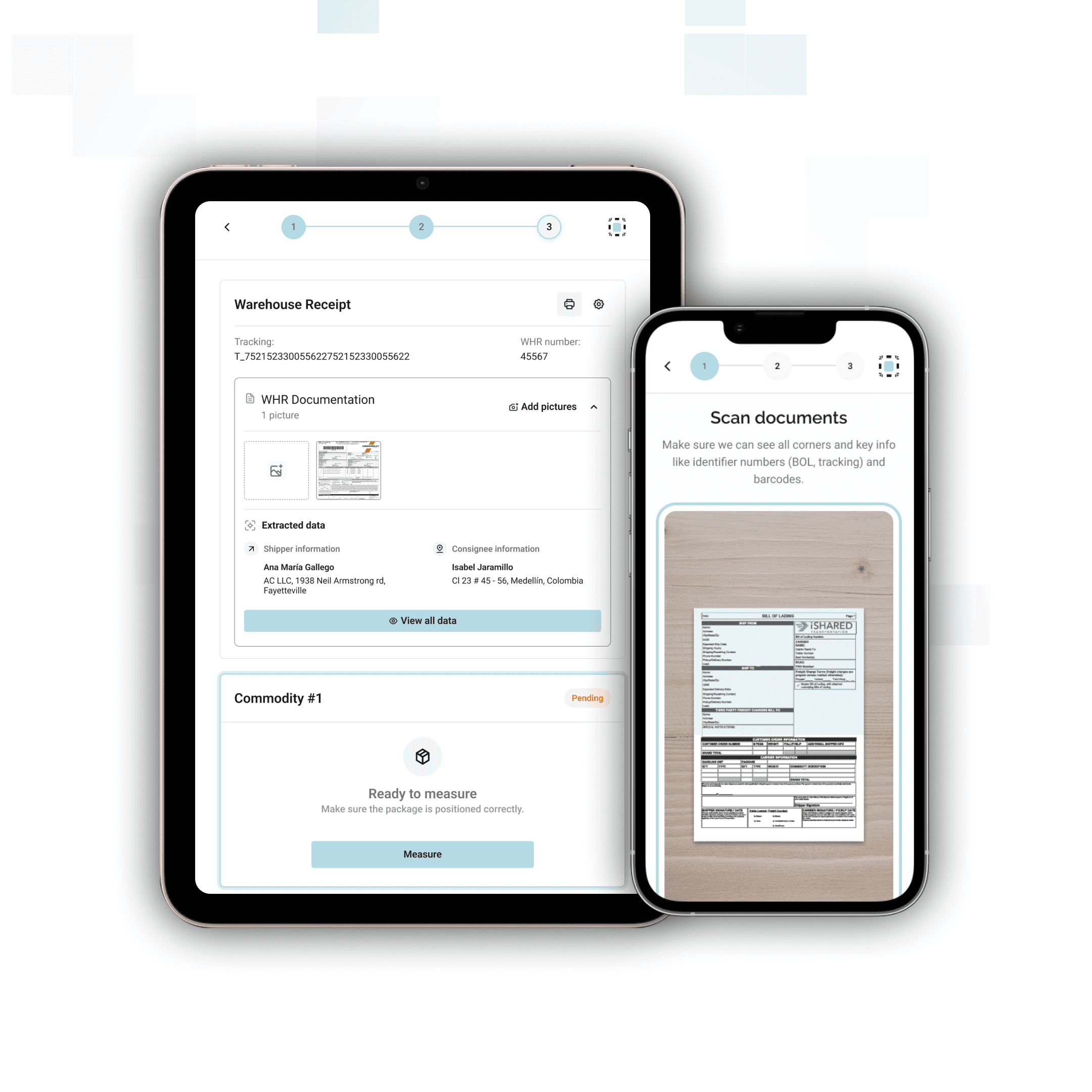 Capture every detail from your labels, BOLs, AWBs, and any supporting document. Take full control of your dimensioners with one effortless app experience. Connect your devices and empower your operators to process up to 4× more packages per hour with unprecedented simplicity, speed, and precision.